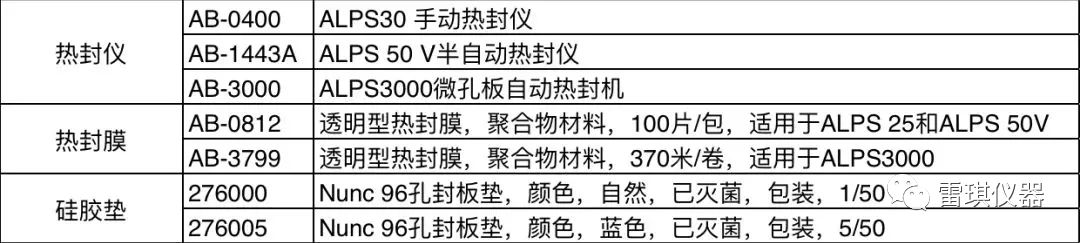 我们还提供一系列的盖垫,粘合膜和热封膜以及密封设备,方便您保护样品。热封机可轻松实现整齐、牢固的密封微孔板,包括PCR板,避免传统粘性膜贴歪、贴不紧等情况的发生;对微孔板进行热密封处理,不再需要膜上有黏合剂,不仅能确保出色的密封效果,也能避免黏合剂与储存样品发生反应,污染样品,确保检测的准确性。