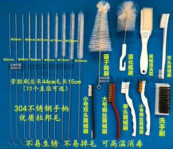 材质:手柄为304不锈钢丝,毛为进口杜邦丝。刷毛为螺旋状,与管壁接触良好,刷洗更彻底,更干净,不锈钢丝缠绕,不生锈,刷柄有弹性,不易变形。 规格:总长44厘米,毛长15厘米,直径2毫米~2厘米, 直径 2, 3,4,5,6,7,9, 11, 13 ,15 20毫米 |